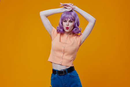 cheerful woman with bright makeup pink hair Glamor posing fun