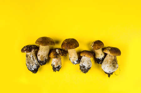 Natural forest mushrooms, white mushroom, boletus, porcini. forest mushrooms on different backgrounds. The concept of natural food, haute cuisine, vegetarian cuisine, restaurant go