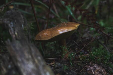 Shot of amazing edible Imleria badia commonly known as bay bolete in moss. Czech Republic, Europe.
