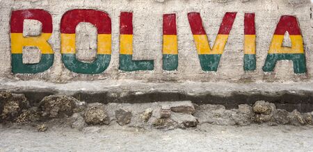 National flag of Bolivia on Uyuni sal lake, Bolivia. High quality photo