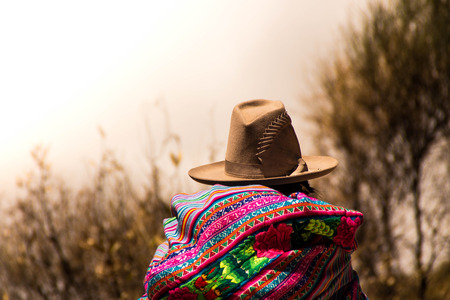 Cusco, Peru 2023. Portrait of native peruvian woman with colorful beautiful clothing dress, presentation at local street market at Cusco, Peru
