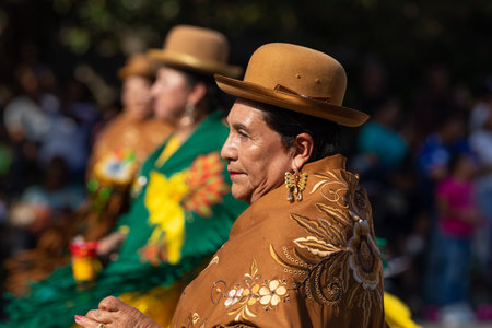 Washington DC, USA - September 21, 2019: The Fiesta DC, bolivian dancers performing the Dance of the Saya during the parade