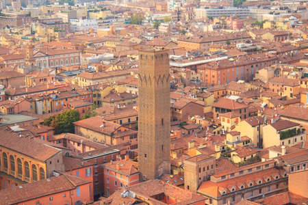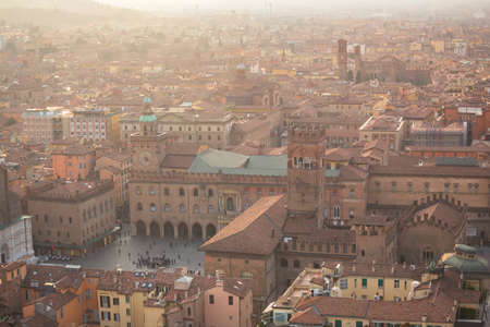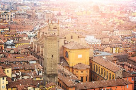 travel to Italy - above view of apartment buildinds in Bologna town from Torre Asinelli ( Asinelli Tower) at sunset