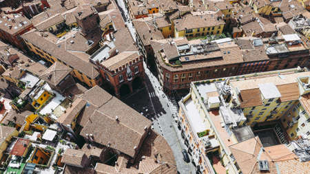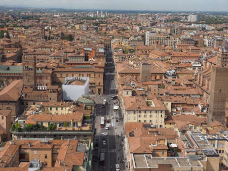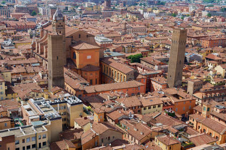 Bologna, Italy - May 11, 2013: Aerial view to the historical center of the Bologna city, Italy.
