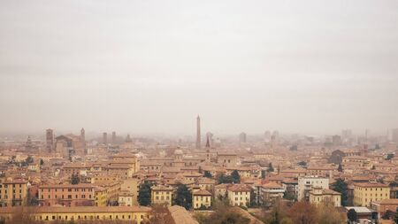 The medieval city of Bolona in foggy weather –panoranic view – Bologna, Emilia Romagna, Italy.