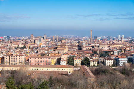 Bologna, cityscape from a high viewpoint in a winter afternoon. Emilia, Italy