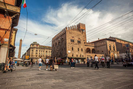 BOLOGNA, ITALY - CIRCA SEPTEMBER 2017: Palazzo del Podesta (meaning Mayor Palace) in Piazza Maggiore square
