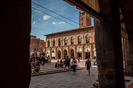BOLOGNA, ITALY 17 JUNE 2020: Piazza Maggiore in Bologna, Italy