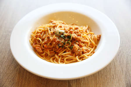 spaghetti bolognese pork or spaghetti with minced pork tomato sauce - Italian food style