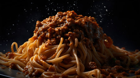 Traditional Italian spaghetti with meat sauce. vibrant colors, rich textures, and delicious flavors