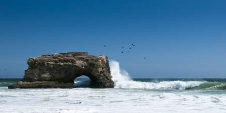 Natural Bridge State Park at Santa Cruz with spreading water and seagulls flying