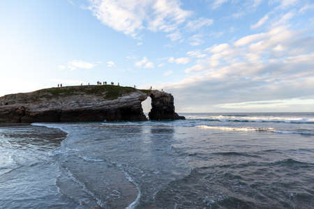 Natural rock arch in beach of Cathedrals (Aguas Santas), in Lugo, Galicia, Spain.