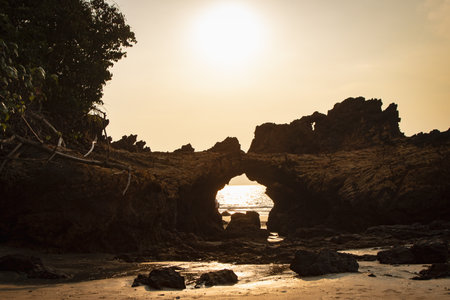 Silhouette of stone bridge at island of Koh Libong, Thailand.