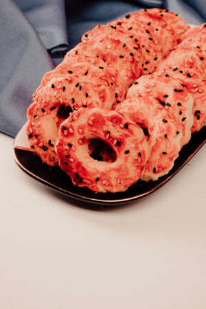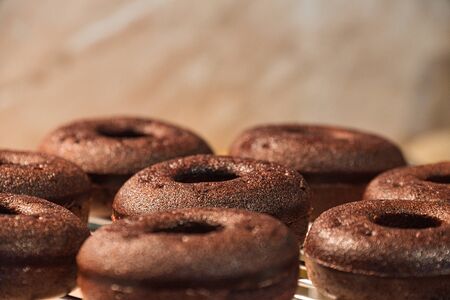 Homemade vegan and gluten free donuts ready to be glazed, close-up image of donuts