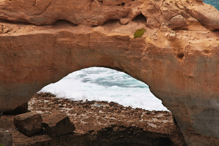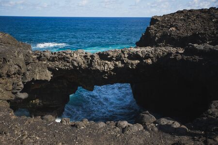 Pont Naturel. Mauritius. The Indian ocean and the cliffs