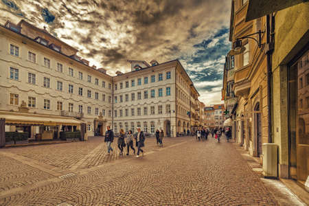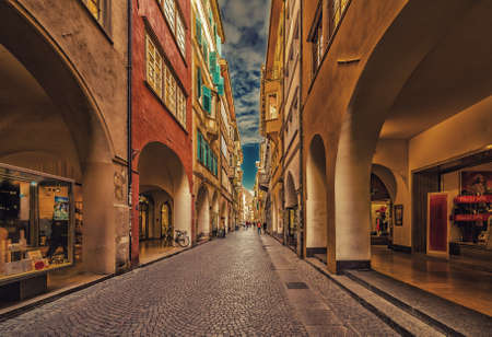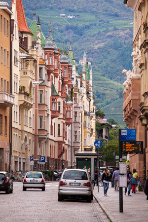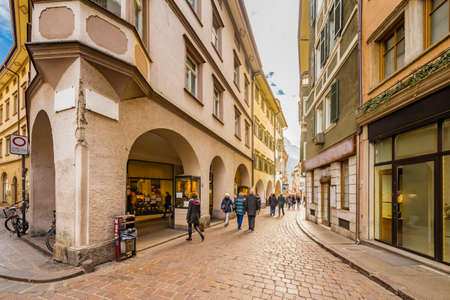 BOLZANO, ITALY - JULY 20: View of a street in historical centre of Bolzano, Italy on July 20, 2014. Bolzano is a city in northern Italy, the capital of Trentino Alto province.