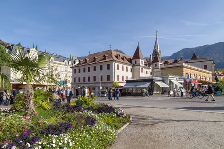 Merano, Italy - October 29, 2022: Merano old town, Autonomous Province of Bolzano, South Tyrol, Northern Italy