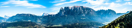 Autumn landscape panorama with sunny day in mountans, Alpe de Siusi, Dolomites, Italy