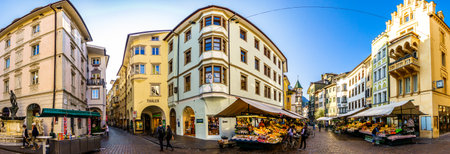 Bozen, Italy - September 18: famous old town and square with historic buildings of Bozen on September 18, 2020