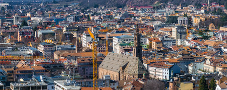 Aerial View of Bolzano, Italy, Featuring Bolzano Cathedral and Hills
