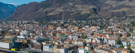 Bolzano and Dolomite mountains aerial panoramic view. Bolzano is the capital city of the South Tyrol province in northern Italy.