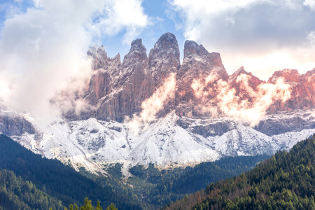 Geisler or Odle Dolomites mountain peaks, Italy