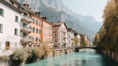 Beautiful old town surrounded by mountains view. Generative AI