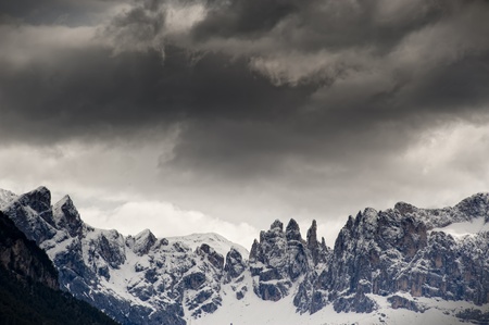 The beautiful high mountains in Italy with the cloudy sky in the background
