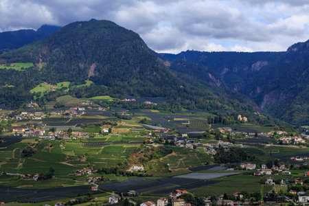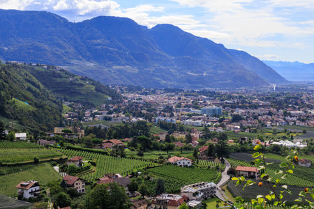 Mountain panorama with city Merano in South Tyrol, Italy