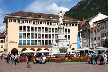 The Walther square in the city center of Bolzano, the capital city of South Tyrol.