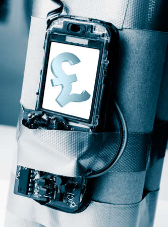 Image of a time bomb against dark background. Timer counting down to detonation illuminated in a shaft light shining through the darkness, conceptual image