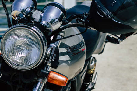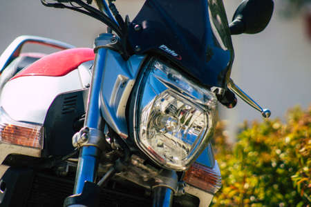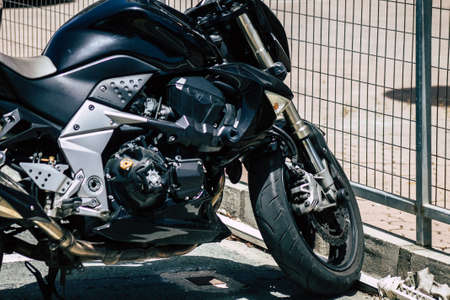 Limassol Cyprus May 14, 2020 Closeup of a motorcycle parked in the streets of Limassol in Cyprus island