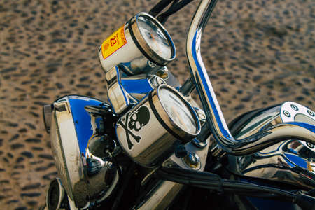 Limassol Cyprus May 21, 2020 Closeup of a motorcycle parked in the streets of Limassol in Cyprus island