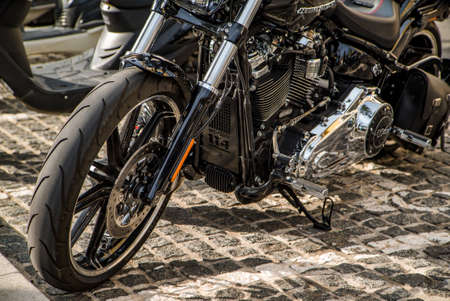 black motorcycle harley davidson .type of transport. Crikvenica. Croatia - July 2, 2020.