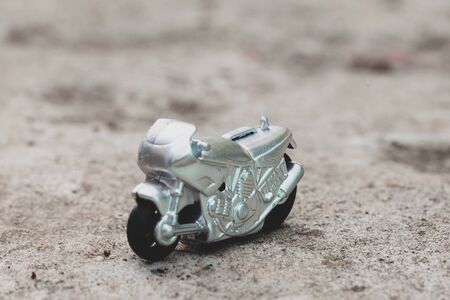 Small toy gray sport bike on nature close-up