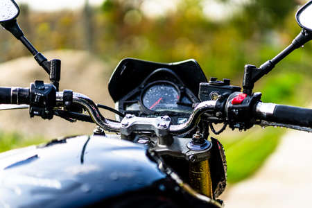 Ignition on handlebar of a motorcycle or motorbike. Close up.