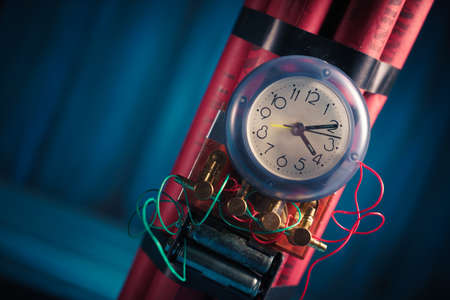 High contrast image of a timebomb on a wooden background
