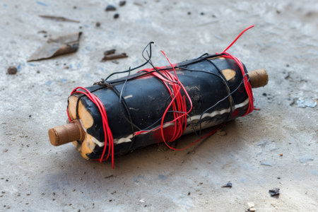 Close-up of a dynamite bundle used in mining operations, focus on textures with space for text.