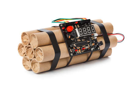 Dynamite bomb with timer isolated on white background