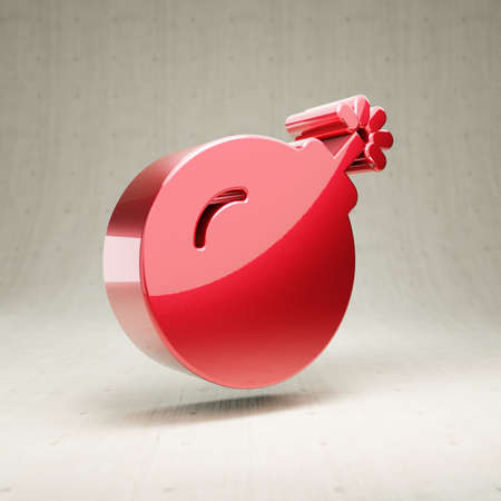 Bomb icon. Red glossy metallic Bomb symbol isolated on white concrete background.