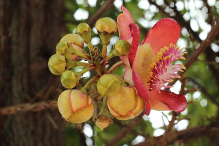 Cannonball tree or Cannonball tree flower blooming in the garden