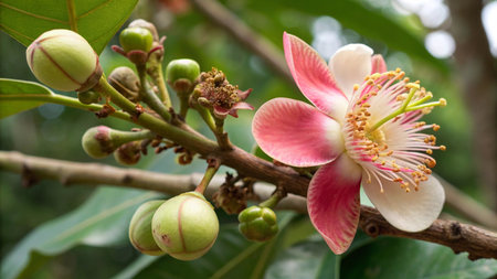 Enchanting Cannonball Tree Blossom: A Detailed Floral Macro Display