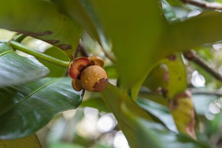 Mangosteen on mangosteen tree is a queen of fruit in Thailand and asia fruit have a sweet can buy at Thai street food and fruit market at agriculture farm