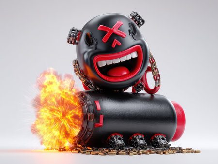 3D cartoon, a happy skull on a black bomb icon with a burning lit fuse