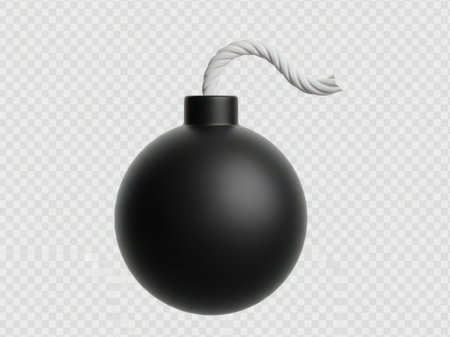 Round black bomb with lit fuse burning with sparks. Bomb about to detonate symbolizing destruction, threats, or dangerous violence.