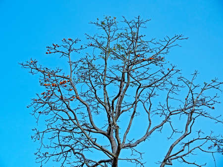 blooming Bombax ceiba or red cotton under blue sky