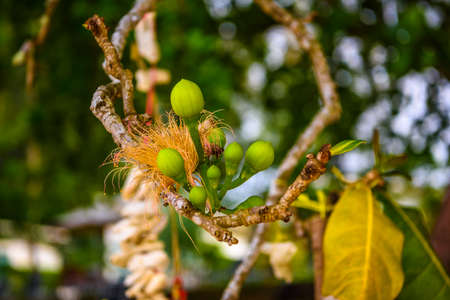 Smal green young frutis on tree branch macro, White Sand Beach Khao Lak, Phang-nga, Thailand