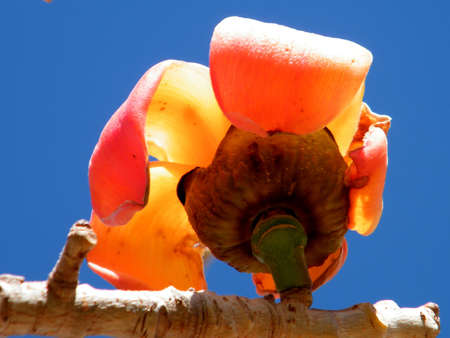 Big Orange flower of Bombax ceiba tree in Edith Wolfson Park in Ramat Gan, Israel
