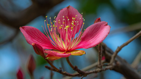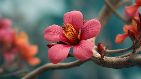Exotic Pink Flower Blossom on a Branch, Captivating Beauty