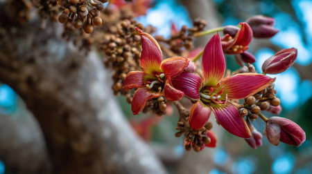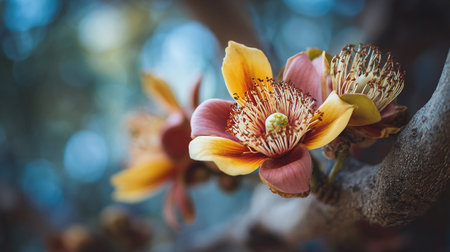 Enchanting Cannonball Tree Blossom: A Detailed Floral Macro Display